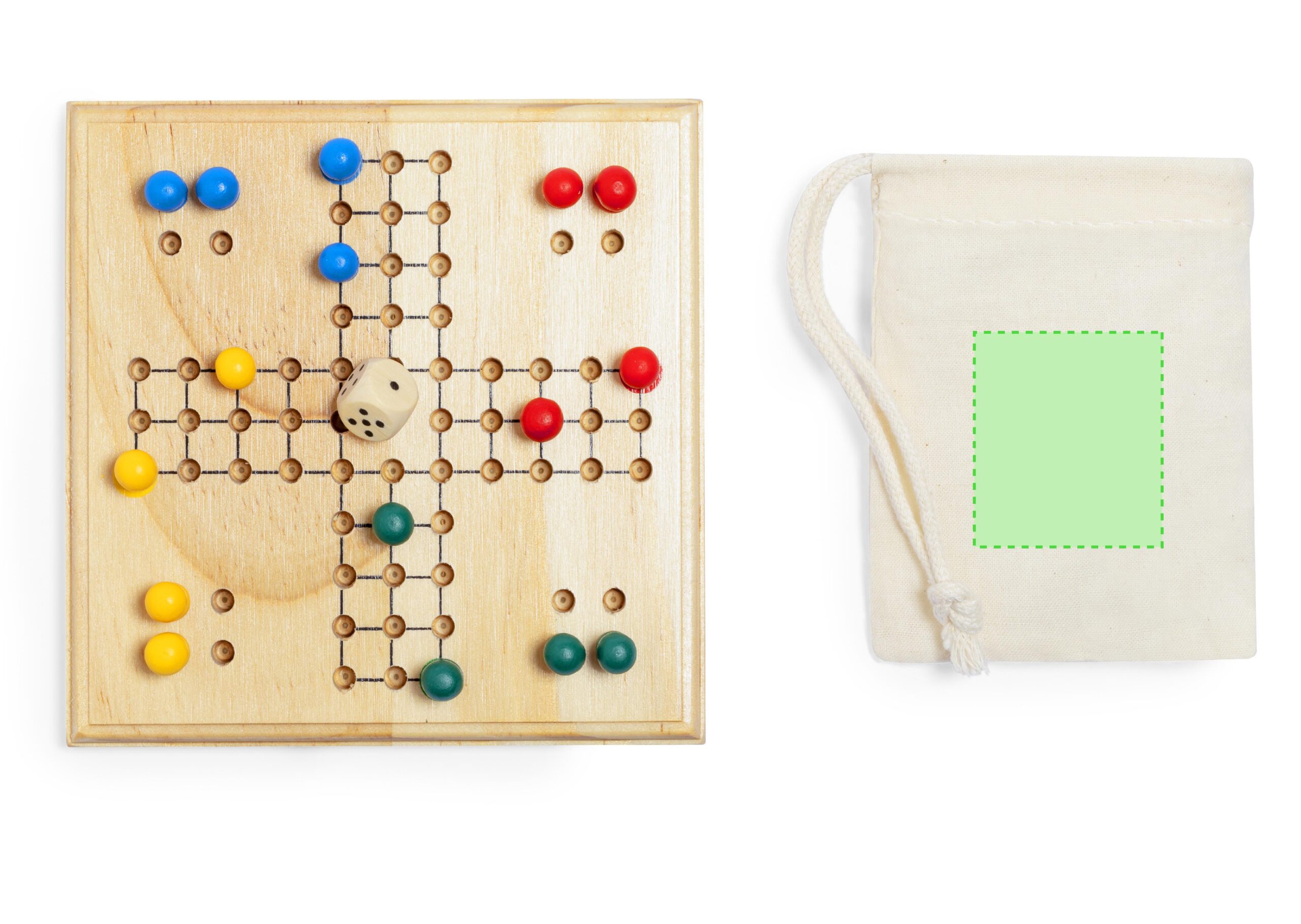 Umweltfreundliches Ludo-Spiel aus Holz mit Baumwolltasche – klassisches Familienspiel für 2–4 Personen Unterhaltsames und klimafreundliches Ludo-Spiel aus Holz. Das Set enthält einen Spielplan, 16 Plättchen in 4 Farben und einen Würfel. Kommt in einer praktischen Baumwolltasche zur Aufbewahrung und wird einzeln in einer Box mit natürlicher Optik präsentiert (Power Design). Perfekt für Firmengeschenke oder Handouts für Messen und Veranstaltungen.