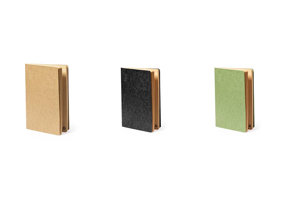 Klimavennlig A5 innbundet notisblokk laget av 100 % resirkulert papir. Inneholder 120 ulinjerte sider, også laget av resirkulert papir. Tilgjengelig i fargene natur, grønn og svart.