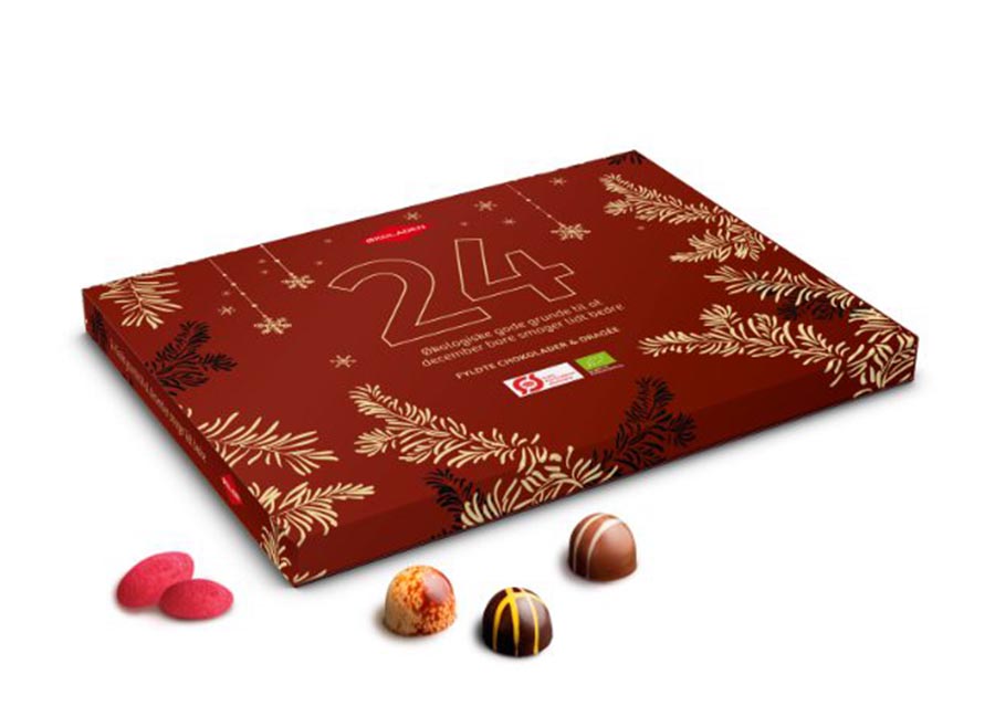Forside / Shop / Jul og højtid / Økologisk julekalender med fyldte chokolader